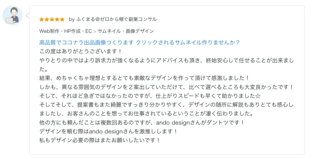 最高のサムネがすぐに出来てビックリしていますw 迅速丁寧な対応していただけるので、デザインならando designさんに任せれば一発で解決します☆