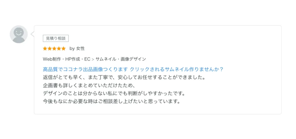 訴求力が強くなるようにアドバイスも頂き、終始安心して任せることが出来ました。 結果、めちゃくちゃ理想とするとても素敵なデザインを作って頂けて感激しました! お客さんのことを想ってお仕事されているということが凄く伝わりました。